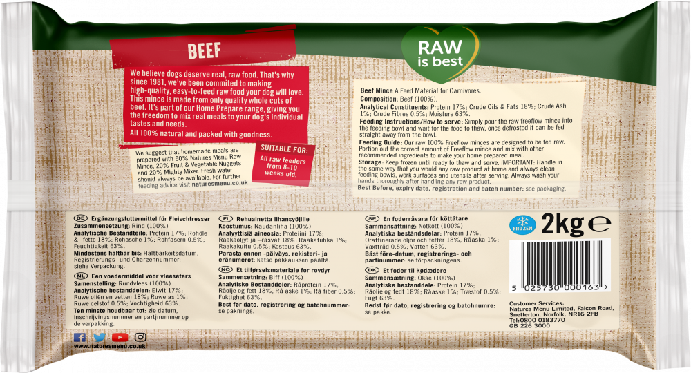 High quality mince beef in an easy to prepare, free-flowing frozen format. 100% natural and packed with goodness.