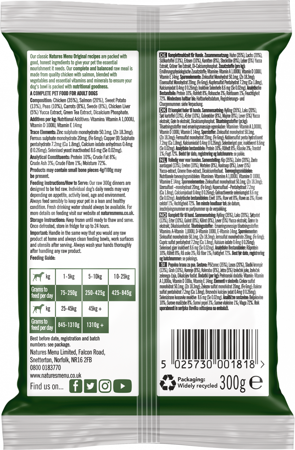 Free range chicken, responsibly sourced salmon and our wholesome blend of fruit and veg make this nutritious complete and balanced raw ready meal.