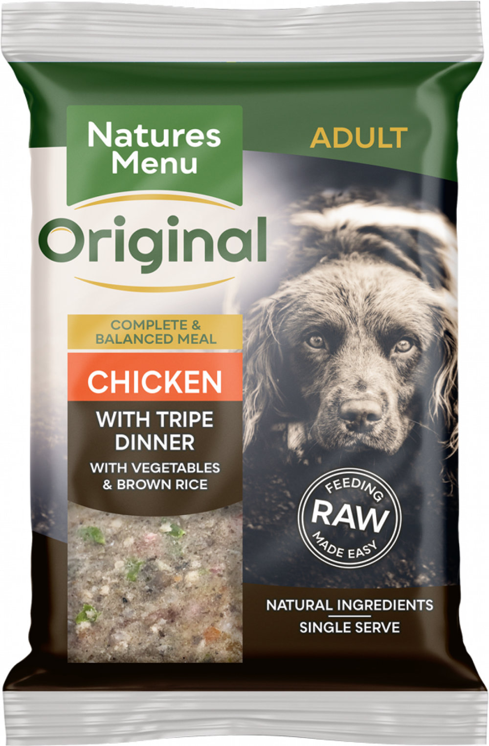 A nutritionally balanced raw meal made with free range chicken, tasty tripe, wholesome brown rice and vegetables.