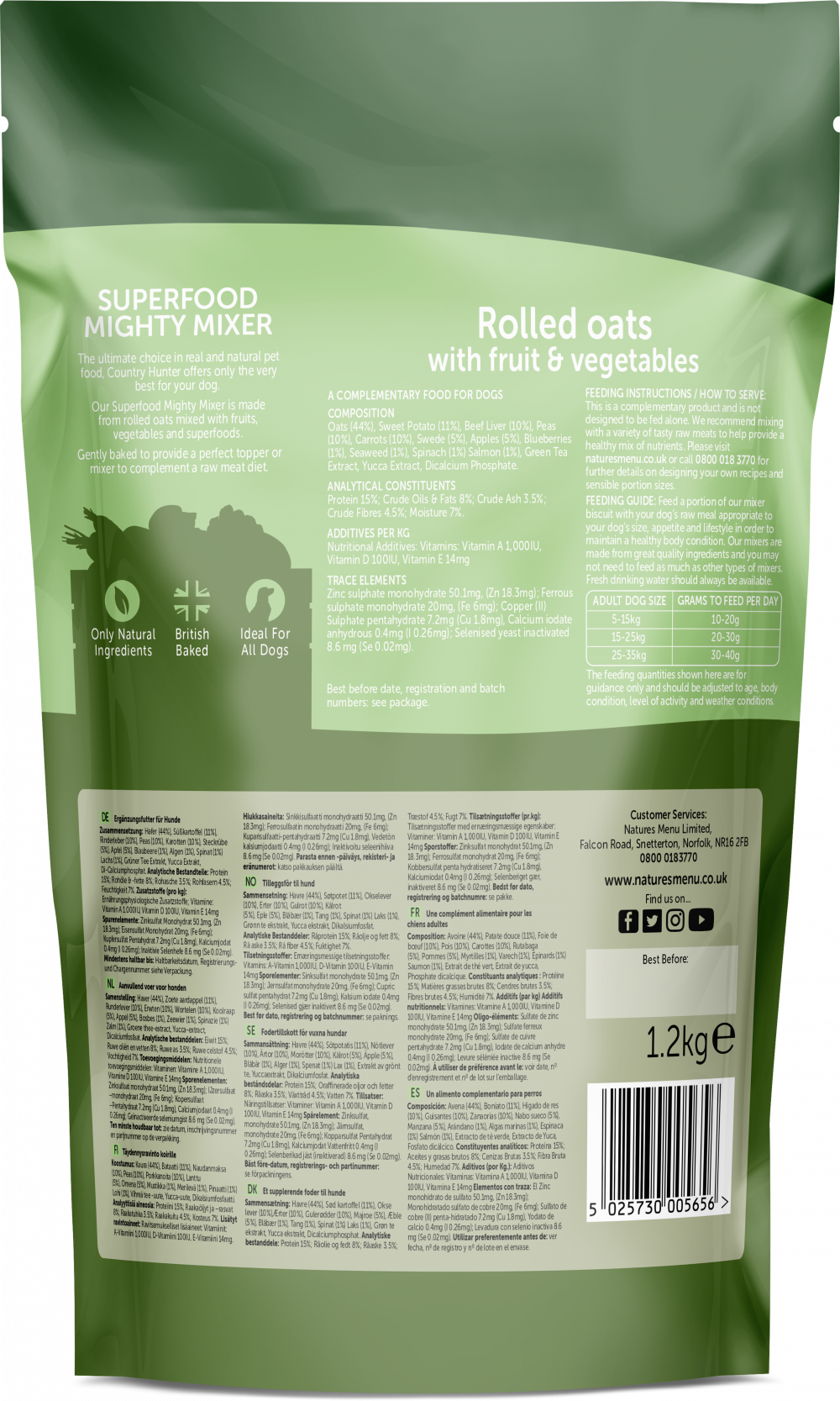 A nutritious blend of rolled oats, fruits and vegetables. Gently baked to provide the perfect dry topper or mixer to complement your dog’s tasty raw meal.