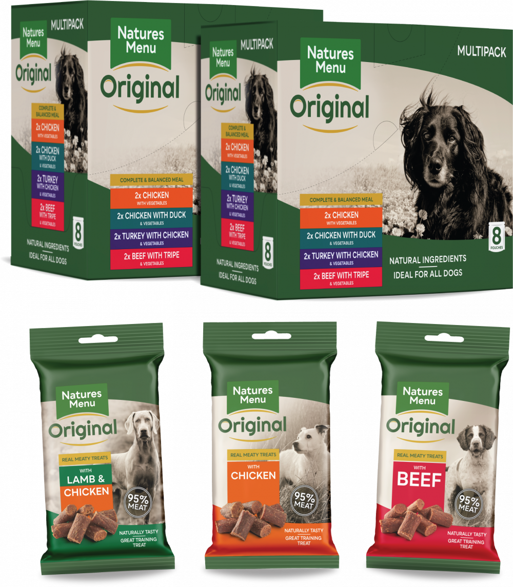 Our Natures Menu pouches and treats small sized bundle provides your dog with a variety of nutritious complete and balanced meals made from 60% meat, blended with high quality natural ingredients. Each bundle also contains a selection of 95% meat treats.