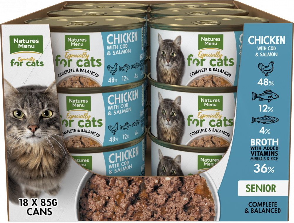 Cats need a high meat quality diet to help them thrive – and that doesn’t stop as they get older. This recipe has been developed especially for older cats. It’s packed with whole cuts of chicken, salmon and cod – plus all the essential vitamins and minerals your cat needs to stay fit and healthy.
