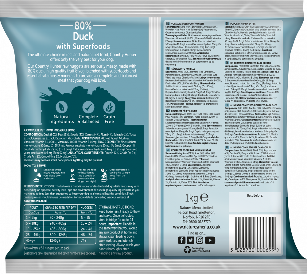 Superfoods aren’t just for humans! These complete and balanced, raw single protein nuggets are packed with 80% succulent duck as well as specially selected fruits and vegetables.